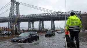दुनिया के सबसे विकसित देशों में शुमार अमेरिका के कई राज्य भारी बारिश के चलते बाढ़ का सामना कर रहा है। न्यूयॉर्क से लेकर न्यू जर्सी, पेंसिल्वेनिया और कनेक्टिकट तक भारी बारिश से लोग बेहाल हैं।खासतौर से न्यूयॉर्क के हालात सबसे ज्यादा खराब हैं। मैनहट्टन, ब्रुकलिन, क्वींस, ब्रोंक्स, स्टेटन द्वीप और लॉन्ग आइलैंड में अचानक बाढ़ की चेतावनी जारी की गई है। शुक्रवार को न्यूयॉर्क सिटी और आसपास के क्षेत्र में भारी बारिश हुई, जिससे अचानक बाढ़ आ गई।पूरी मेट्रो लाइनें बंद हो गईं। प्रमुख सड़कें झीलों और तालाबों में बदल गईं और बच्चों को बाढ़ वाले स्कूल भवनों की ऊपरी मंजिलों पर भेजना पड़ा। गवर्नर कैथी होचुल ने आपातकाल की स्थिति घोषित कर दी हैं और न्यूयॉर्क वासियों से घर पर रहने का आग्रह किया है। साथ ही बेसमेंट में रहने वाले लोगों को सबसे खराब स्थिति से निपटने को तैयार रहने के लिए कहा गया है। होचुल ने एक संवाददाता सम्मेलन में बोलते हुए तूफान को “जीवन के लिए खतरा पैदा करने वाली वर्षा घटना” बताया। उनके साथ मेयर एरिक एडम्स भी शामिल थे, जिन्होंने न्यूयॉर्कवासियों को चेतावनी दी कि “यह एक खतरनाक मौसम की स्थिति है और यह खत्म नहीं हुई है।”ब्रुकलिन इस समय 6 इंच बारिश में डूबा हुआ है जबकि सेंट्रल पार्क में अब तक 5 इंच से अधिक बारिश दर्ज की गई है। न्यूयॉर्क की गवर्नर कैथी होचुल ने आपातकाल की स्थिति घोषित कर दी। न्यूयॉर्क शहर के मेयर एरिक एडम्स ने शुक्रवार को एक संवाददाता सम्मेलन में कहा, “यदि आप घर पर हैं, तो घर पर ही रहें। दिन खत्म होने से पहले संभवतः 8 इंच बारिश हो सकती है।” अधिकारियों ने कहा कि न्यूयॉर्क के कुछ लोगों को बाढ़ में डूबी कारों और बेसमेंट अपार्टमेंट से बचाया गया है, लेकिन कोई गंभीर चोट या मौत नहीं हुई है।अमेरिकी मीडिया रिपोर्टों के मुताबिक, कुछ स्थानों पर वर्षा की दर 2 इंच प्रति घंटे से अधिक हो गई। अधिकारियों ने बताया कि ब्रुकलिन नेवी यार्ड में सुबह 8 बजे से 9 बजे तक कम से कम 2.58 इंच बारिश हुई। न्यूयॉर्क सिटी में एक यात्रा सलाह जारी की गई है।मेट्रोपॉलिटन ट्रांसपोर्टेशन अथॉरिटी ने कहा कि सबवे में “केवल बेहद सीमित” सेवा उपलब्ध है, और एमट्रैक ग्राहकों को न्यूयॉर्क शहर के अंदर और बाहर ट्रेनों में देरी के लिए तैयार रहने के लिए कहा गया है। भारी बारिश के कारण न्यूयॉर्क शहर के लागार्डिया हवाई अड्डे के लिए सभी उड़ानें रोक दी गई हैं। केंद्रीय उड्डयन प्रशासन ने कहा कि हवाईअड्डे के ईंधन क्षेत्र और आसपास की सड़कों पर पानी भर गया है। लागार्डिया में कम से कम 259 उड़ानें रद्दर्क शहर में बारिश हल्की हो जाएगी। लेकिन शनिवार सुबह बारिश जारी रह सकती है। हालांकि शनिवार दोपहर तक बारिश पूर्वोत्तर से बाहर हो 0