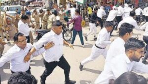 वकील-पुलिसकर्मी भी चोटिल हुए