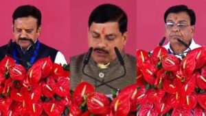 मध्य प्रदेश में मोहन’राज’ का आगाज हो गया है। बुधवार को प्रदेश के नए मुख्यमंत्री मोहन यादव ने पद और गोपनीयता की शपथ ली। लाल परेड ग्राउंड में राज्यपाल मंगुभाई पटेल ने मोहन यादव के अलावा डिप्टी सीएम राजेंद्र शुक्ला और जगदीश देवड़ा को शपथ दिलाई।पीएम नरेंद्र मोदी, गृहमंत्री अमित शाह और भाजपा शासित राज्यों के मुख्यमंत्रियों की मौजूदगी में मोहन, जगदीश और राजेंद्र ने शपथ ली।कई दिनों से चल रही अटकलों को खत्म करते हुए भाजपा ने सोमवार को मोहन यादव को राज्य के नए मुख्यमंत्री के रूप में चुना और पार्टी के दिग्गज नेता शिवराज सिंह चौहान पांचवीं बार मुख्यमंत्री पद संभालने का रिकॉर्ड नहीं बना पाए। शिवराज सिंह चौहान सरकार में उच्च शिक्षा मंत्री रहे 58 साल के मोहन यादव को सर्वसम्मति से भाजपा विधायक दल का नेता चुना गया। मध्य प्रदेश में राजेंद्र शुक्ला और जगदीश देवड़ा उपमुख्यमंत्री का ओहदा संभालेंगे।मोहन यादव को राष्ट्रीय स्वयंसेवक संघ (आरएसएस) का करीबी माना जाता है और उन्हें शीर्ष पद के दावेदार के रूप में नहीं देखा जा रहा था। वह अन्य पिछड़ा वर्ग (ओबीसी) समुदाय से आते हैं, जिनकी संख्या राज्य की जनसंख्या में 48 प्रतिशत से अधिक है। सोमवार को मुख्यमंत्री नामित होने के बाद यादव ने राज्यपाल मंगूभाई पटेल से मुलाकात की और अगली सरकार बनाने का दावा पेश किया।मोहन यादव यादव 2013 में पहली बार उज्जैन दक्षिण सीट से विधायक चुने गए थे। उन्होंने 2018 और फिर 2023 में विधानसभा सीट बरकरार रखी। पिछले महीने के विधानसभा चुनावों में, भाजपा ने राज्य की 230 विधानसभा सीटों में से 163 सीटें जीती और कांग्रेस को 66 सीटों के साथ दूसरे स्थान पर धकेल दिया।