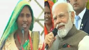 पीएम मोदी ने अपने वाराणसी दौरे के दूसरे दिन की शुरुआत स्वर्वेद महामंदिर से की। मंदिर का लोकार्पण किया और वहां मौजूद हजारों लोगों को संबोधित किया। इसके बाद बरकी गांव में आयोजित विकसित भारत संकल्प यात्रा में शामिल होने पहुंचे। यहां जनसभा को संबोधित करने से पहले लाभार्थी महिलाओं से मुलाकात की। उनकी जबानी ही उनके अनुभव सुने। लाभार्थियों से बातचीत की और यात्रा से संबंधित सवाल भी किए। इसी दौरान एक लाभार्थी महिला चंदा देवी ने अपने अनुभवों को बेहद आकर्षक तरीके से साझा करना शुरू किया।