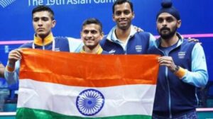 भारत ने एशियाई खेलों में पाकिस्तान को 2-1 से हराकर पुरुषों की स्कॉश टीम स्पर्धा में स्वर्ण पदक जीता। हांगझोउ ओलंपिक सेंटर में सौरव घोषाल, महेश मनगांवकर और अभय सिंह की टीम ने रोमांचक मैच में पाकिस्तान को 2-1 से हराकर भारत को स्वर्ण पदक दिलाया।पाकिस्तान के इकबाल नासिर ने भारत के महेश मनगांवकर को 3-0 (11-8, 11-3, 11-2) से हराकर मुकाबले की शुरुआत की, लेकिन अगले ही मुकाबले में भारतीय खिलाड़ी सौरव घोषाल ने मोहम्मद आसिम खान को 3-0 (11-5, 11-1, 11-3) से बराकर भारत को बराबरी दिलाई। आखिरी मुकाबले में अभय सिंह और जमान नूर के बीच काफी रोमांक गेम देखने को मिला और अंत में भारतीय खिलाड़ी ने पाकिस्तान स्कॉश खिलाड़ी को 3-1 (11-7, 9-11, 8-11, 11-9, 12-10) से हराकर यह मुकाबला भारत के पक्ष में कर दिया।दिन के नायक चेन्नई के अभय सिंह रहे जिन्होंने उतार चढ़ाव भरे निर्णायक मैच में गजब का संयम दिखाते हुए नूर जमां को 3-2 से पराजित किया। इस मैच में 25 वर्षीय भारतीय ने दो स्वर्ण पदक अंक बचाये और विजेता रहे। इस जीत के बाद उन्होंने अपना रैकेट हवा में उछाल दिया। भारतीय स्क्वैश खिलाड़ी एक अक्टूबर से एकल और मश्रिति युगल स्पर्धाओं में भाग लेंगे।इससे पहले अनुभवी सौरव घोषाल ने मोहम्मद असीम खान पर 3-0 की जीत से भारत को मुकाबले में वापसी करायी क्योंकि महेश मंगावंकर शुरुआती मैच में इकबाल नासिर से इसी अंतर से हार गए थे। भारत ने इस तरह लीग चरण में पाकिस्तान से मिली शिकस्त का बदला चुकता किया। भारत ने इंचियोन 2014 चरण में पुरुष टीम स्क्वाश स्वर्ण पदक जीता था जबकि पाकिस्तान ने पिछला स्वर्ण पदक ग्वांग्झू 2010 में जीता था।यह पदक एशियाई खेलों में भारत का 10वां स्वर्ण और कुल मिलाकर 36वां पदक था। इससे पहले प्रतियोगिता में महिला टीम ने कांस्य पदक जीता था।
