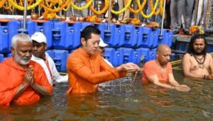 प्रयागराज महाकुंभ भूटान के राजा जिग्मे खेसर नामग्याल वांगचुक आज उत्तर प्रदेश के मुख्यमंत्री योगी आदित्यनाथ के साथ लखनऊ हवाई अड्डे से प्रयागराज महाकुंभ आए। संगम पहुंचकर भूटान किंग ने ने मुख्यमंत्री योगी के साथ त्रिवेणी जी का पूजन अर्चन किया। साथ में मंत्री नंदगोपाल नंदी एवं स्वतंत्र देव सिंह जी भी उपस्थित रहे। मुख्य मंत्री जी ने कुंभ भेंटकर के स्वागत किया। इसके पश्चात मुख्यमंत्री योगी आदित्यनाथ स्वामी रामभद्राचार्य जी से मिलने भी गए एवं उनकी भागवत कथा के समापन सत्र में शामिल भी हुए।योगी जी ने कहा कि महाकुंभ प्रयागराज में स्वामी रामभद्राचार्य जी के 251 कुण्डीय यज्ञ में मै अपने आपको सम्मिलित करके अभिभूत हूं। अब तक 22 दिनों में 38 करोड़ श्रद्धालुओं ने त्रिवेणी में डुबकी लगाई है। योगी ने कहा कि सनातन धर्म मानव धर्म है। मानवता की सुरक्षा के लिए सनातन का सुरक्षित होना आवश्यक है। परन्तु कुछ लोगों को सनातन धर्म की यह उन्नति देखी नहीं जा रही है। इससे लोग संसद की भी मर्यादा को धूमिल कर रहे है। इन लोगों को तो महाकुम्भ आयोजन से ही आपत्ति थी। कहते थे कि इतना खर्च करने की क्या आवश्यकता है। ऐसे लोग सनातन धर्म एवं प्रयाग की वैश्विक उन्नति देखी नहीं जा रही है।