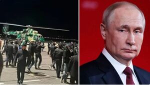 आधी रात को रूस के दागिस्तान में एयरपोर्ट पर फिलिस्तीन के समर्थन में भीड़ के उपद्रव मचाने और अल्लाह-हू-अकबर के नारे लगाने को लेकर राष्ट्रपति व्लादिमीर पुतिन भड़के हुए हैं। उन्होंने इसके पीछे पश्चिमी देशों और यूक्रेन पर रूस के अंदर अशांति फैलाने का आरोप लगाया है।यह घटना रविवार आधी रात की है, जब इजरायल से एक विमान के पहुंचने की खबर पर भीड़ एयरपोर्ट में घुस गई थी। भीड़ का मकसद यहूदियों को निशाने पर लेना था। आरोप है कि भीड़ में मौजूद लोगों ने यात्रियों के पासपोर्ट भी चेक किए।29 अक्टूबर की आधी रात को रूस के दागिस्तान क्षेत्र स्थित एक एयरपोर्ट पर भीड़ के हमले से पूरी दुनिया स्तब्ध है। इजरायल और हमास में चल रही जंग के बीच रूस में इस तरह की पहली घटना सामने आई है। इजरायल से एक विमान की लैंडिंग की सूचना भीड़ ने एयरपोर्ट पर हमला बोल दिया था। लोगों की भीड़ रनवे पर दौड़ती नजर आई। कुछ लोगों को विमान के ऊपर चढ़कर अल्लाह-हू-अकबर के नारे लगाते हुए भी देखा गया। इस घटना पर संयुक्त राज्य अमेरिका ने भी बयान दिया है। घटना की कड़ी निंदा करते हुए विदेश विभाग के प्रवक्ता ने कहा कि यह “एक नरसंहार जैसा लग रहा था।”